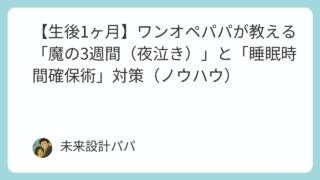 子育て 【生後1ヶ月】ワンオペパパが教える「魔の3週間(夜泣き)」と「睡眠時間確保術」対策(ノウハウ) 未来設計パパです。当ブログでは、**【プロの視点×FIRE】を軸に、「家族防衛・最コスパ戦術」**をテーマに情報発信しています。33歳の未来設計パパです。今回は、私にとって最も切実な実体験であり、ブログを立ち上げるきっかけともなった**「妻... 2025.10.07 子育て
