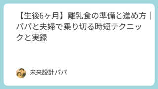 子育て 【生後6ヶ月】離乳食の準備と進め方|パパと夫婦で乗り切る時短テクニックと実録 壮絶ワンオペを乗り切ったパパが教える生後6ヶ月離乳食の進め方。高性能ツールを使った週末時短テクニック、料理中のパパの役割、夫婦円満の合言葉を実録公開。 2025.11.21 子育て