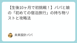 子育て 【生後10ヶ月で初挑戦!】パパと娘の「初めての宿泊旅行」の持ち物リストと攻略法 旅先での「もしも」に備える!赤ちゃんとの旅行で本当に必要な予備品リスト。多めに持つべき肌着の量や、忘れてはいけない保険証の「コピー」の必要性まで、リスクヘッジの視点で解説します。 2025.11.30 子育て