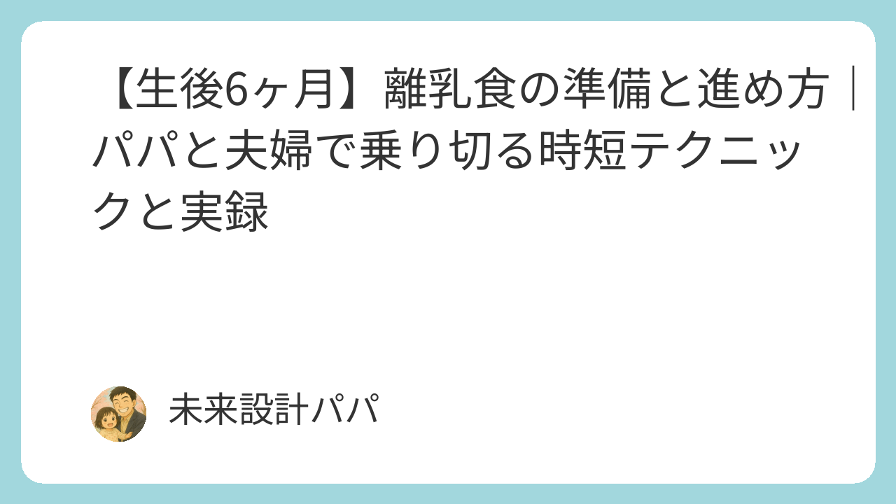 専門的な知識(一級建築士の勉強で培った合理的な思考)は役に立ちませんが、切実な実体験と合理的な思考に基づいた「未来設計パパ流」の離乳食攻略法が、あなたの家庭の笑顔につながれば嬉しいです。