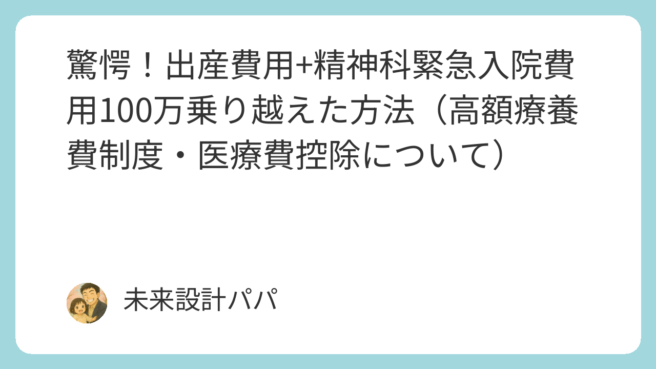 妻の緊急入院による自己負担額は、単純な病気の治療費だけではありませんでした。出産直後のトラブルと、その後の精神科入院という**「二重の危機」**が重なり、公的補助金や保険が適用されない費用が積み重なった結果です。