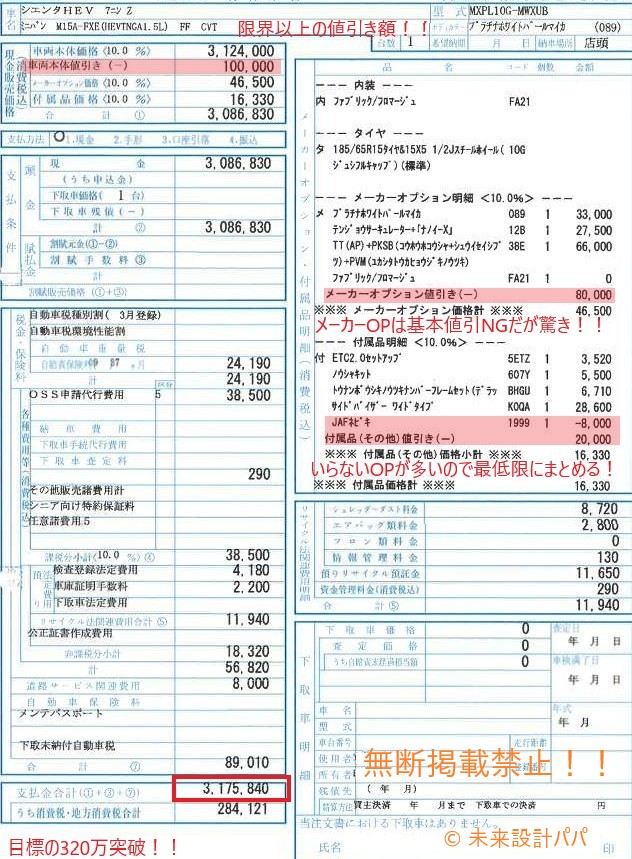 目標は、人気の新型シエンタを総額320万円で手に入れること。結果から言えば、最終的な着地は3,175,840円。この「未来設計パパの最強交渉術」の全てを公開します。