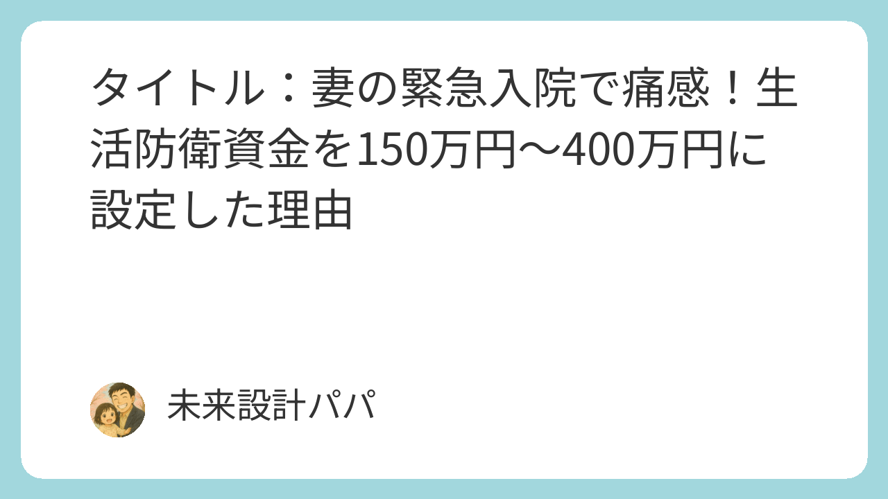 【実録】妻の緊急入院で痛感!生活防衛資金を150万円~400万円に設定した理由
