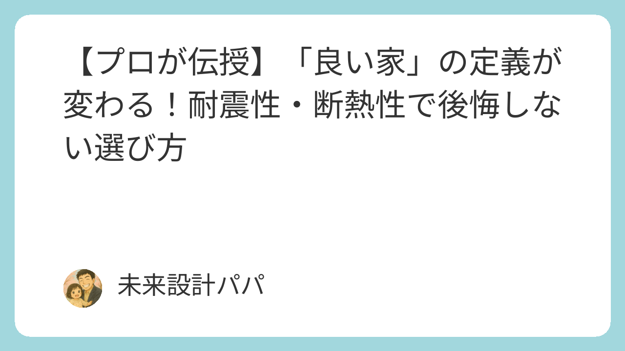 「良い家」選びは、感情ではなく、耐震等級3やHEAT20 G2/G3といった数値と基準で判断しましょう。住宅は、あなたのFIRE達成を大きく左右する「最高の資産」なのです。