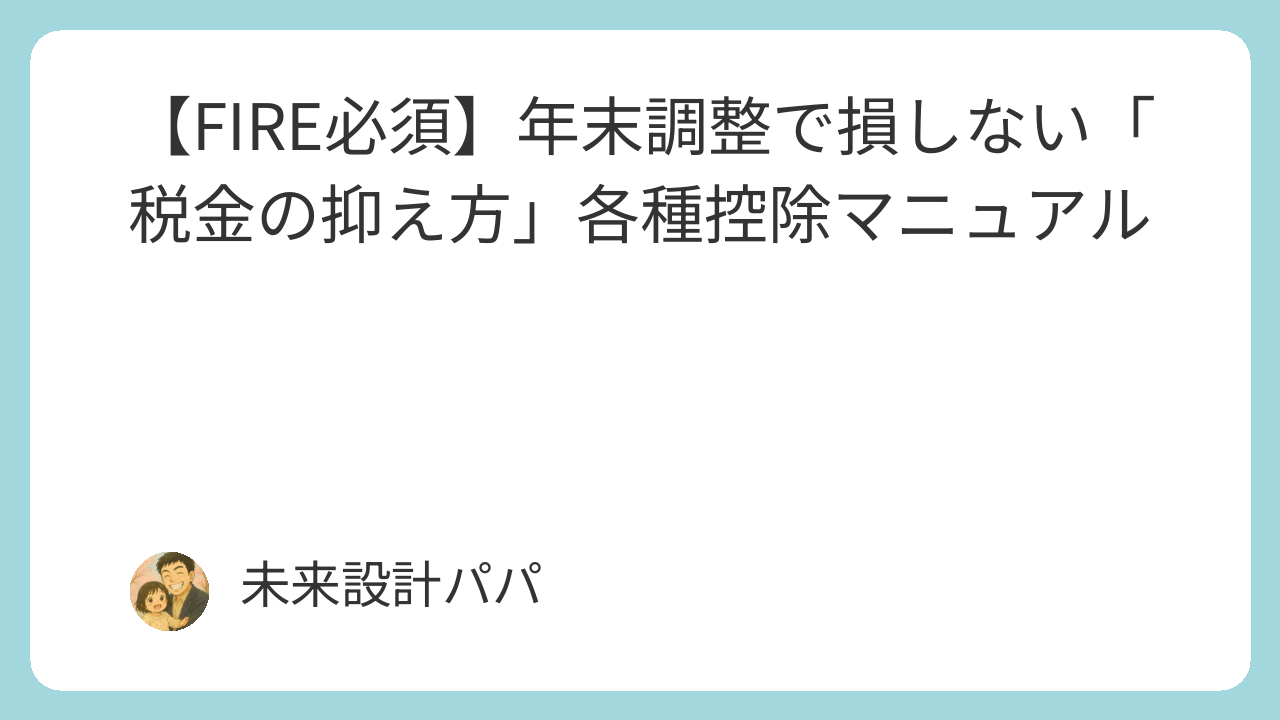 この記事では、給与所得者が年末調整で確実にチェックすべき項目と、未来設計パパが実践するFIRE加速のための賢い節税戦略を、初心者の方にも分かりやすく解説します。