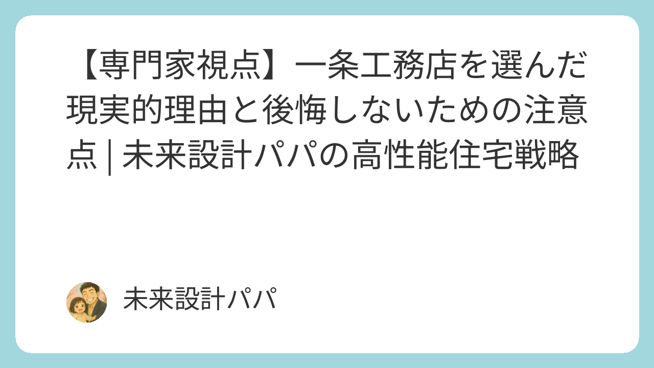【専門家視点】一条工務店を選んだ現実的理由と後悔しないための注意点 | 未来設計パパの高性能住宅戦略