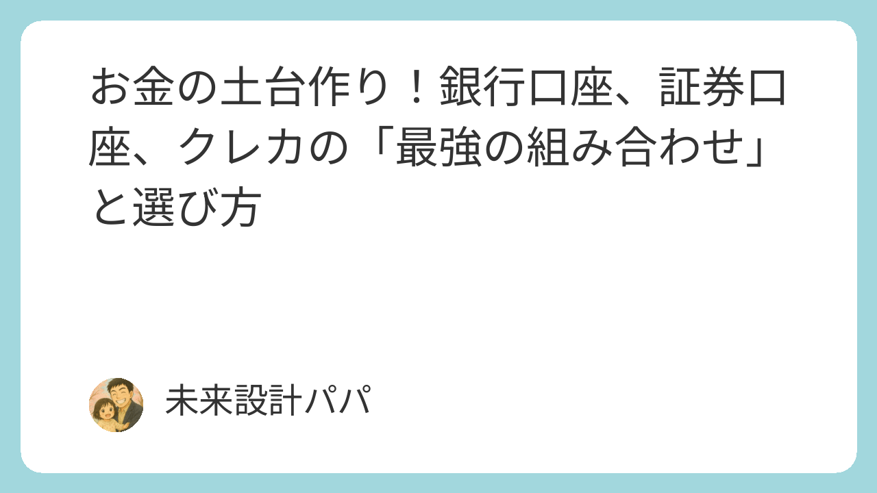 これまで、住宅予算や保険の見直しといった**「大きな固定費の最適化」について解説してきました。家計の体質改善において、次は毎日使うお金の「通り道」**、つまり銀行口座、証券口座、クレジットカードといった金融インフラを最適化することが必須です。
